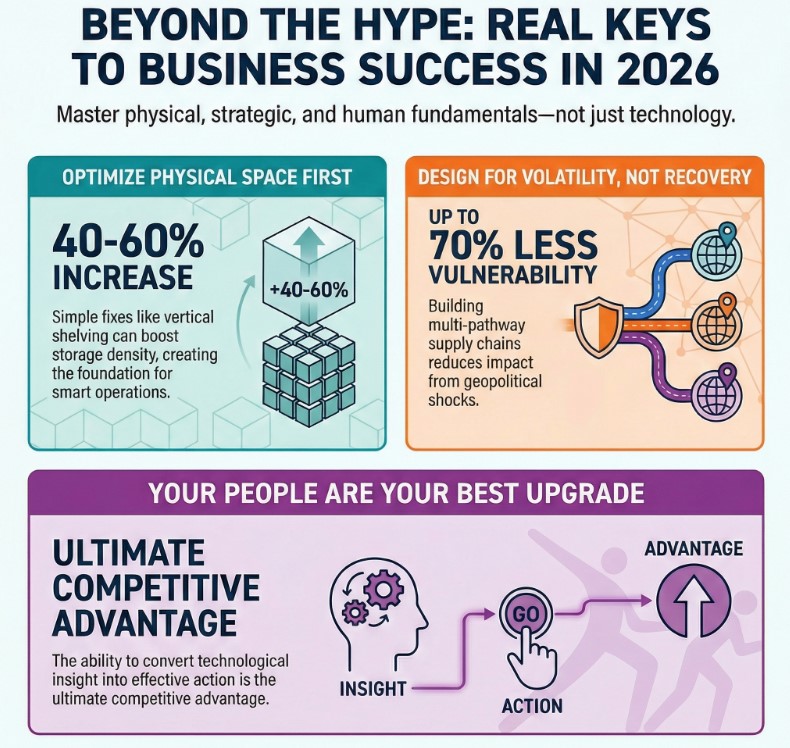 The defining challenge for leaders in 2026 is not a technological race, but a balancing act of strategic integration. True competitive advantage will be seized by those who ground their high-tech ambitions in low-tech operational excellence; who architect supply chains for constant pressure, not just recovery; and who recognise that the most powerful processor in their entire enterprise remains the human mind.